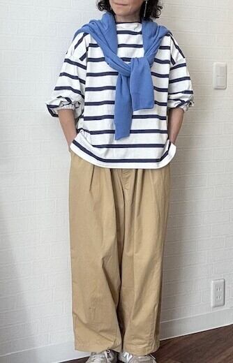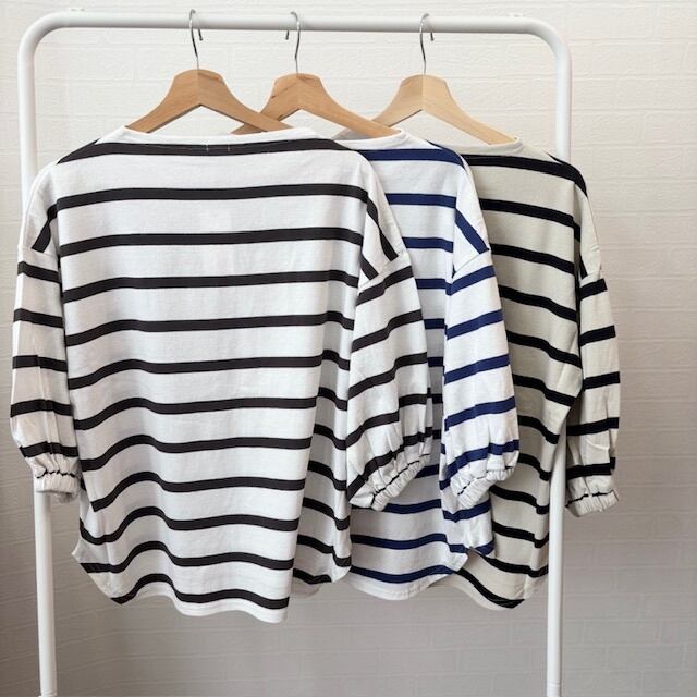 襟元が開きすぎないボートネックで袖口はゴムなので袖をまくってきてもボリュームが増して素敵です