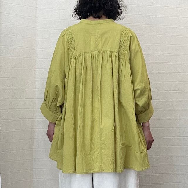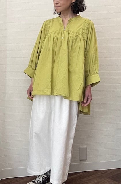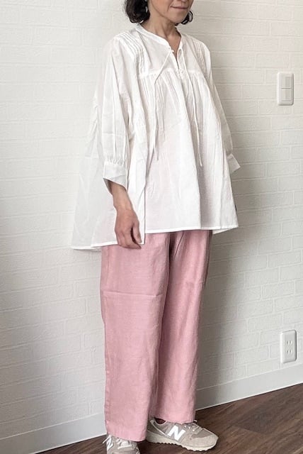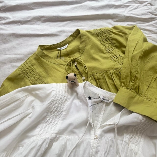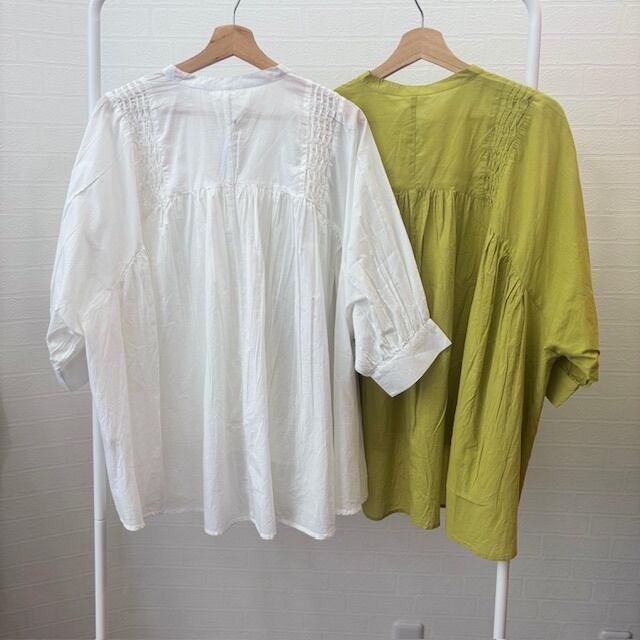 前と背中に贅沢にあしらったピンタックが上品さを出してくれます