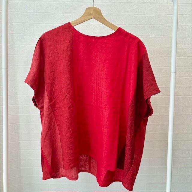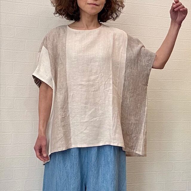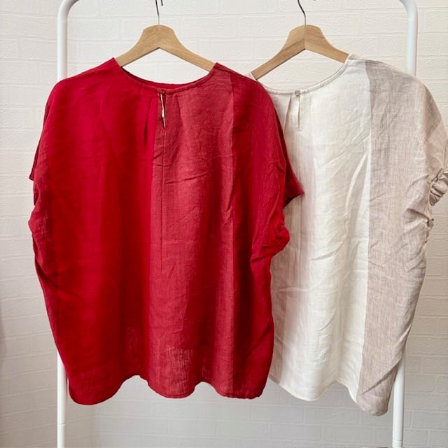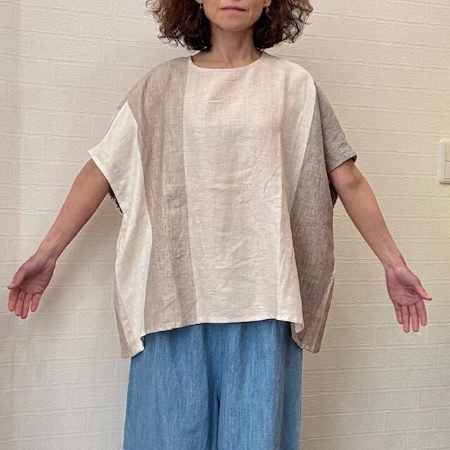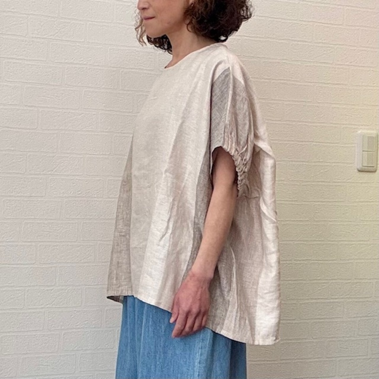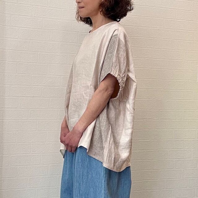 麻100%の生地をたっぷりと使用したシルエットのブラウス