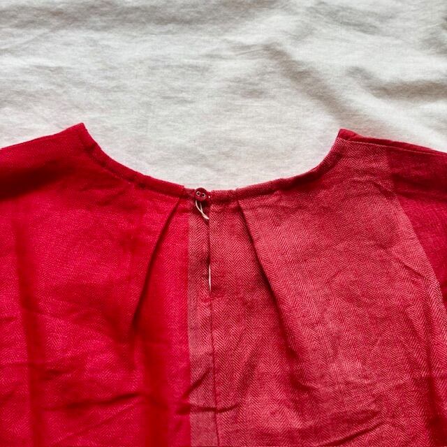 背中襟ぐりにタックが入り、後ろはふんわりとしたシルエットに