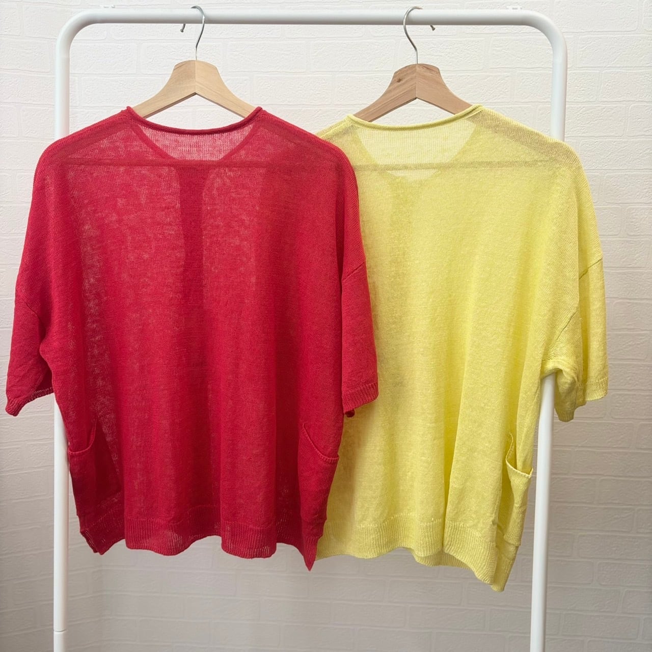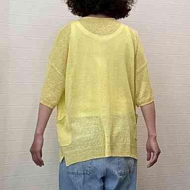 ドロップショルダーなので肩回りもすっきりし、ゆったりしたインナーとの重ね着にもピッタリです