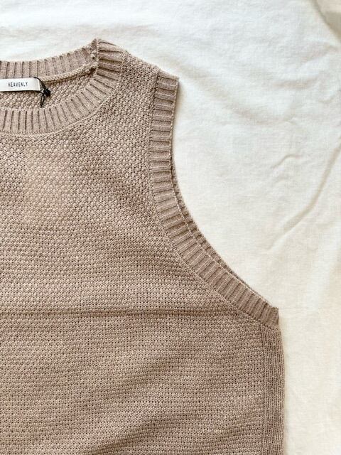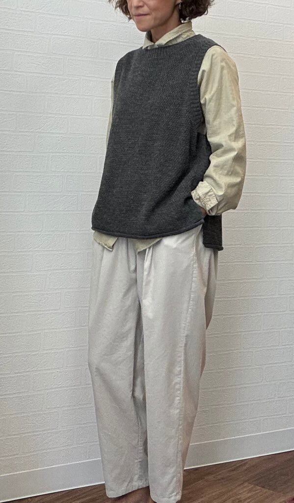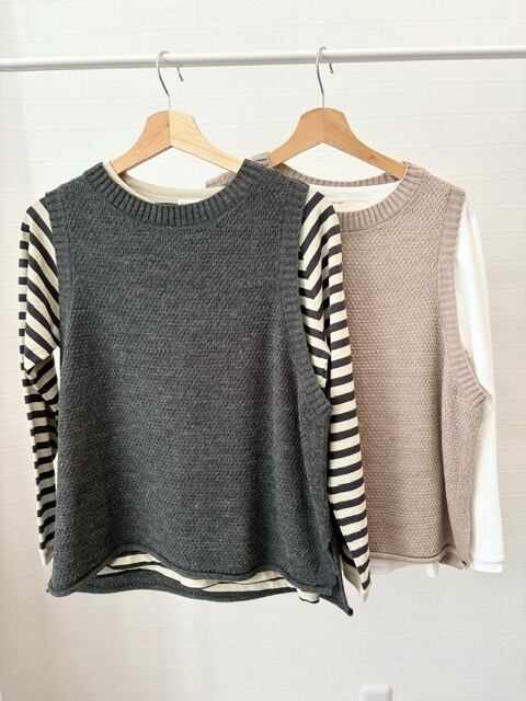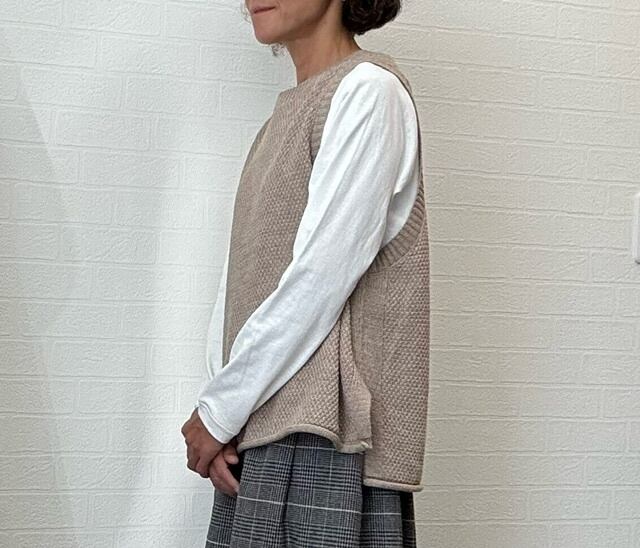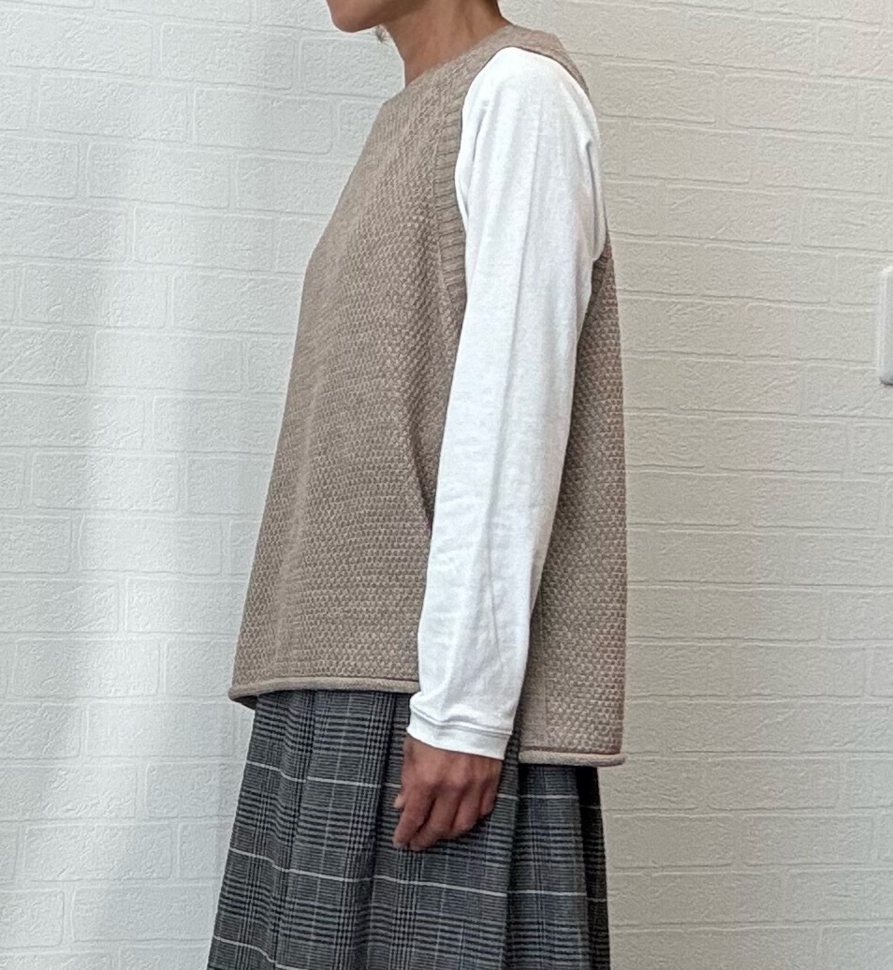コットン・ウール・リネンが入った糸を使用したニットベスト