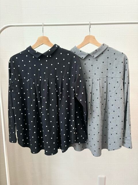 グレー生地はブラックドット